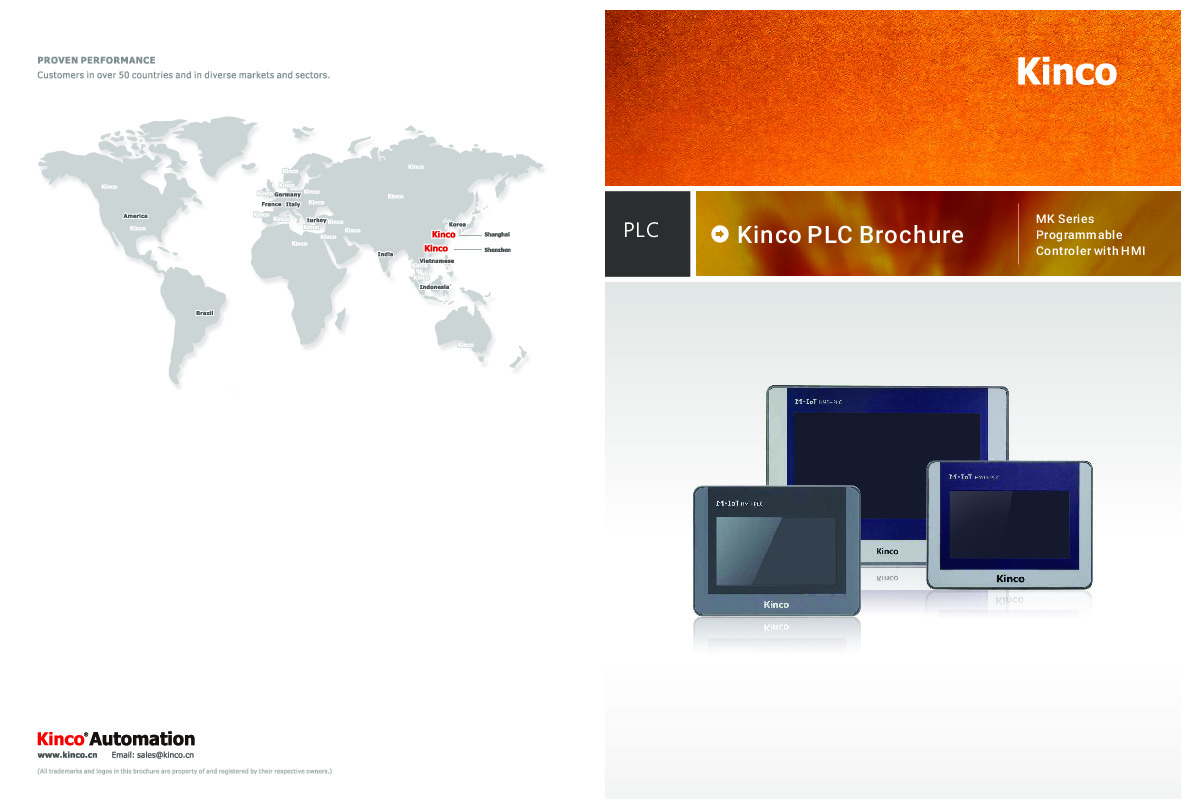 Karta katalogowa z tabelami doboru sterowników PLC ze zintegrowanym panelem HMI serii MK firmy Kinco Automation.