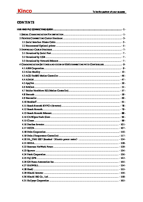 Przewodnik po sposobach podłączenia sterowników PLC różnych marek do paneli operatorskich frimrmy KINCO Automation. Zawiera dokładne scematy podłączenia .